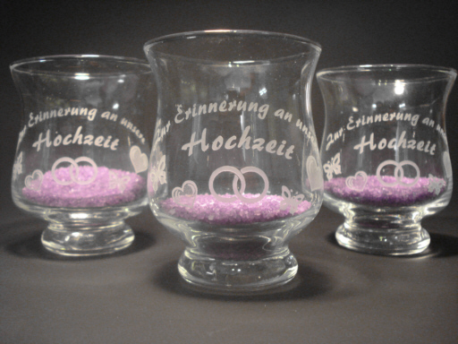 Unterstreichen Sie diesen ganz besonderen Anlass auch mit schönen Glas-Gravuren - stilvoll und einzigartig.